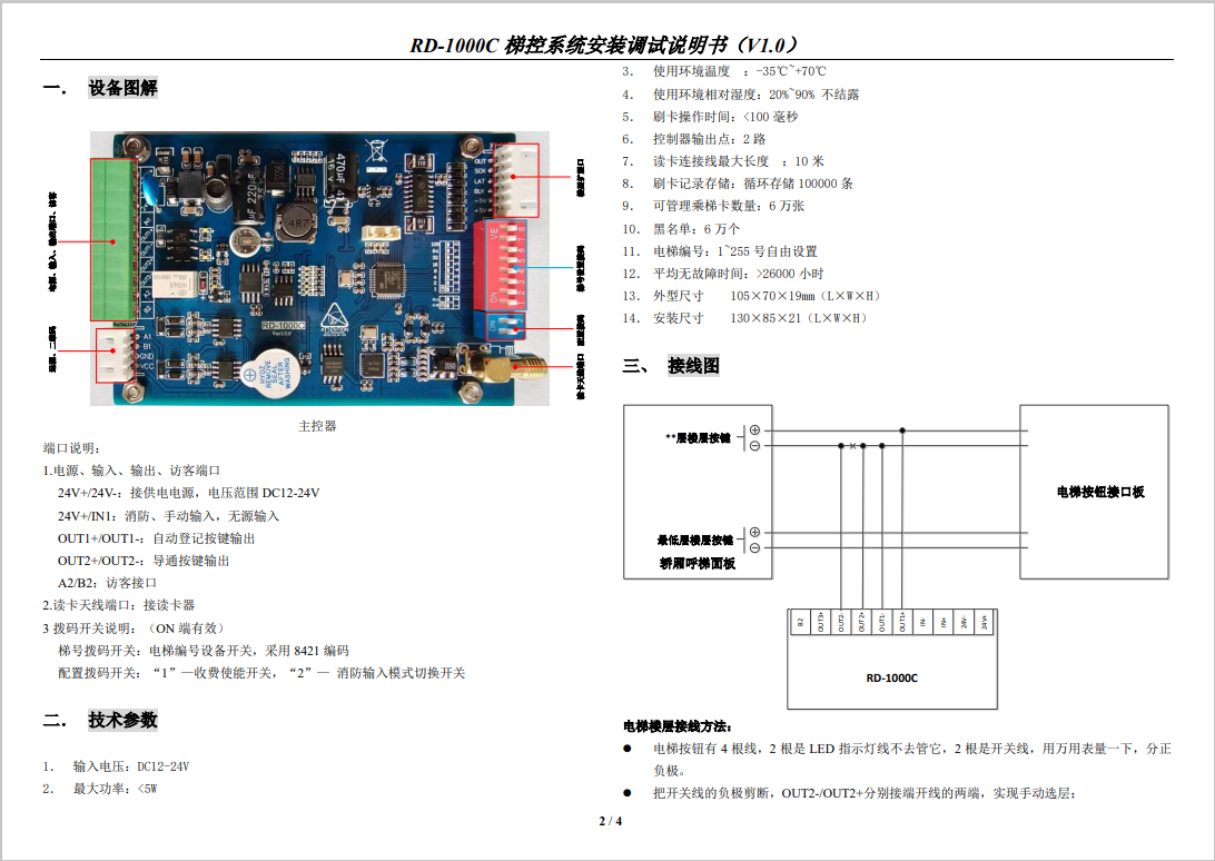 RD - 1 0 0 0 C 梯控系統(tǒng)安裝調(diào)試說(shuō)明書(shū)